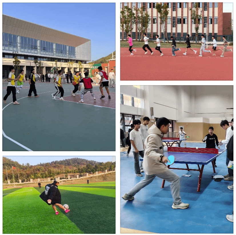 体育类社团:篮球社团的球员身着队服在球场激烈拼抢,篮球穿梭间尽显竞技热情;足球社团在绿茵场上传控配合,步伐默契呼应团队精神;乒乓球社的球台旁,学子们持拍对攻,银球往来间展现灵动反应;羽毛球社团的精准攻防、田径社与跳绳社的跑道冲刺,共同诠释“健康向上”的青春姿态。