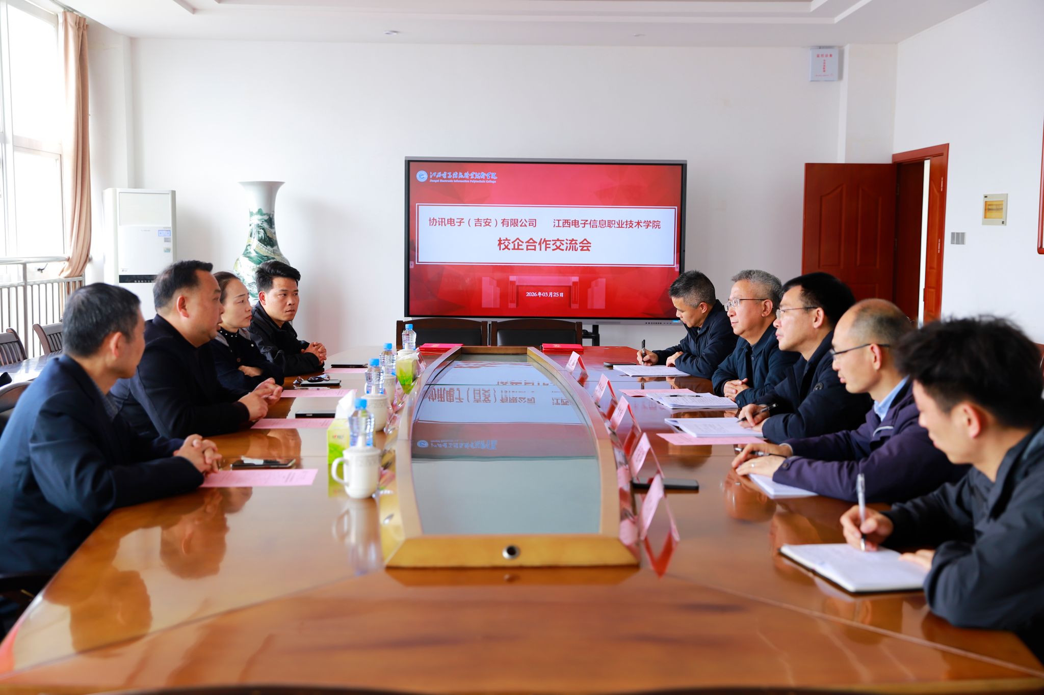 3月25日,我校与协讯电子(吉安)有限公司举行校企合作签约仪式。协讯电子(吉安)有限公司人资行政总监刘淑平,人事经理廖丽珍,高级工程师周庭辉,培训中心主管钟声建,校党委书记肖红秋,党委委员、副校长钟端玮,以及相关部门负责人共同出席仪式。