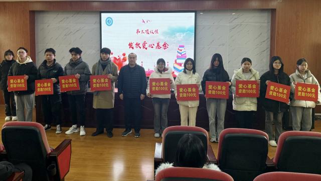 2025年1月8日下午,学校团委在五楼阶梯教室组织开展一年一度“爱心基金”发放仪式,及时传递学校的关怀与慰问。学校纪委书记江耀武出席仪式并为学生发放爱心基金,班主任代表和127名受助学生参加活动。