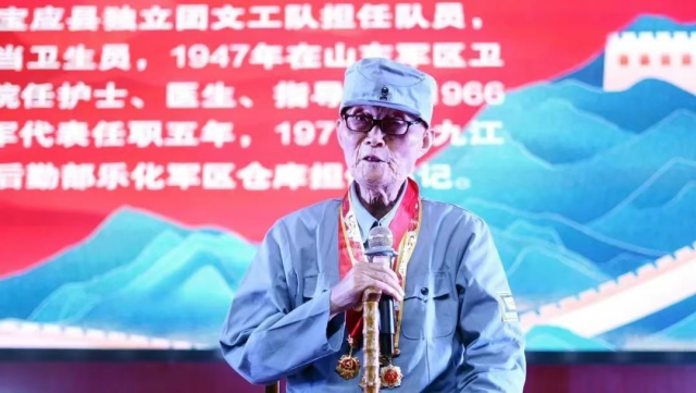 诗会特别邀请两位年逾九旬的抗战老兵胡琏、杨振环亲临现场。他们以亲身经历讲述烽火岁月的革命故事,带领观众穿越时空,重温峥嵘历程。老兵们坚毅的目光与铿锵的话语,让在场师生深刻感受到“一寸山河一寸血”的家国情怀,掌声数次响彻全场。